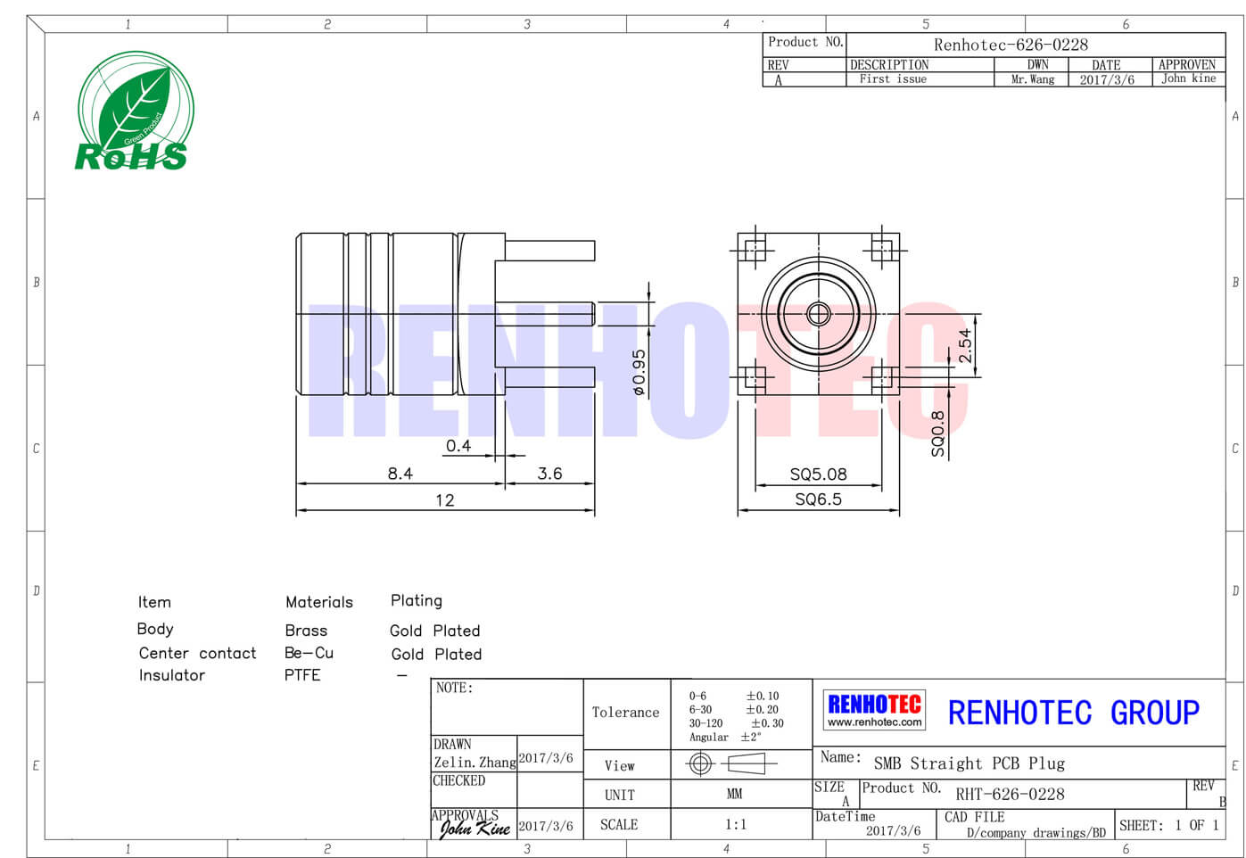 标签:PCB板端,公头,直插,RF射频同轴,SMB连接器,50欧姆