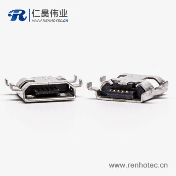 micro接口 usb母座5针SMT沉板H1.60 B型四脚DIP7.15